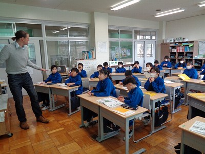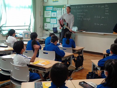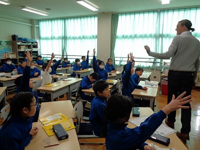 英語学習では、張り切ってポール先生からの質問に英語で答える4年生でした。