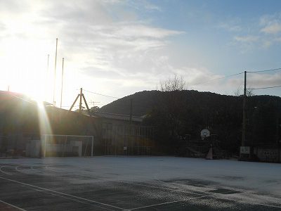 登校後、うっすらと積もった運動場の雪を見ながら、「雪遊び、できるかな?」「もう降らないかな?」「昼休みにドッジボールはできるかな?」など、雪や休み時間の遊びのことを話題にしている子ども達が多く見られました。