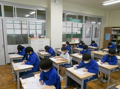 計算ドリルや黄色かるたの暗唱テストをした後、今朝の挨拶を振り返りました。