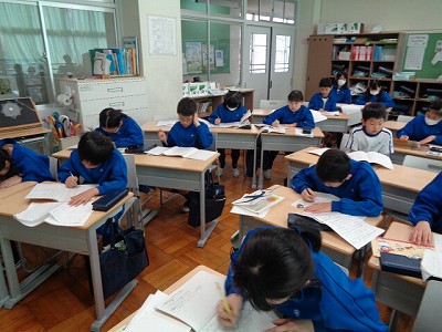 そのあとの国語授業では、説明文の要約文をそれぞれ完成させ、お互いに読み合いを行いました。