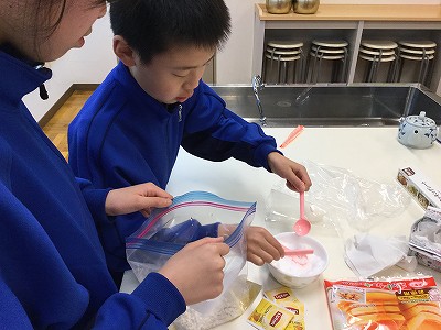 今日が最後のECO生活クラブです。 昼休みに家庭科室に集合し、クッキーの生地を作りました。ECOなクラブです。“汚れ物を少なくする”“油の汚れをひろげない”を今日のECOテーマに掲げました。