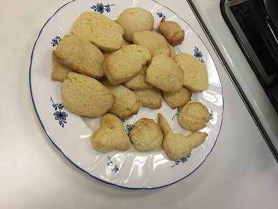家庭科室においしい香りが拡がる頃が、食べ頃です。メロンパンの形や○○チュウにハート型など、形作りも楽しめたようです。