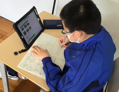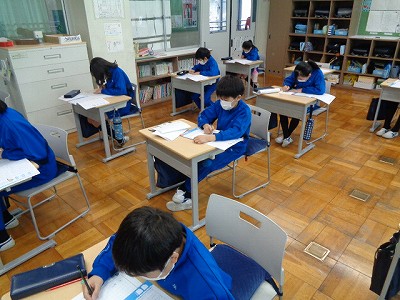 今日の書写は、1000字を超える文章の速記練習を行いました。約25分、ていねいに早く書き写しを行います。タブレットでの打ち込みや、パソコンでの入力もすらすらと早くなった4年生ですが、自分の手でしっかりと字を書くことも忘れてはいけません。みんな集中していたのか、あっという間に時間が過ぎたようです。