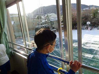 朝は、みぞれがちらつき、グラウンドの様子を見ている3年生の姿が・・・