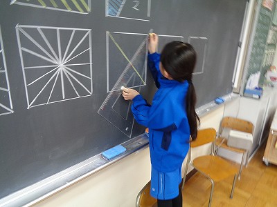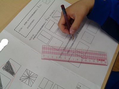 最後に発展の学習として、2本の直線を引いて四分の一ずつに分けることも考えました。
