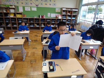 はじめに、「半分」が分数で表す「二分の一」の考え方になることを確認しました。