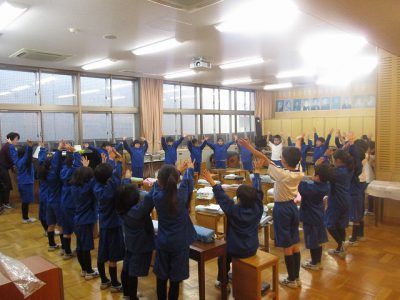 リズムに合わせて動きをつけたり、2年生が考えてくれた替え歌を歌ったり、という練習をしています。