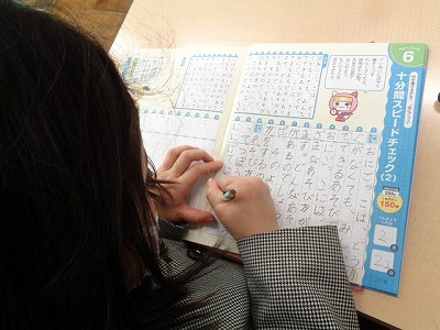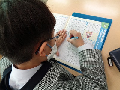 お手本の字を見ながら、一字一字しっかり書き写しています。