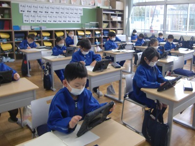 そして、仕上がった人から、iPadで読書をしました。今日は、自分の好きな絵本や図鑑を読んでいます。自分でアクセスして見ることができるようになっています。