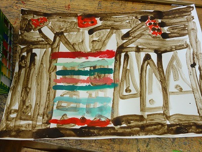 絵の具やカラーペンの色で、土の色を「じゃましない派」「引き立てる派」に分かれたようです。