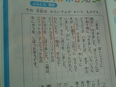 教科書にある日記文を読み、右側のページの問題に答える活動です。日記文から必要な言葉に線を引き、問題を進めました。