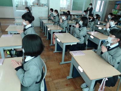 仏さまに今日の目標を伝えようと、礼拝に臨む2年生。