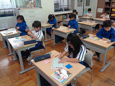 生活の時間は、来週8日に行う「6年生ありがとう茶会」の招待状を書きました。