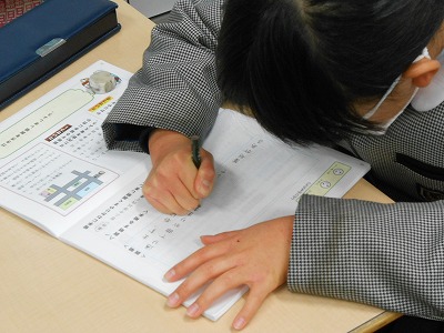 昼根っこの時間は「思考力ドリル」を使いました。今日は「言葉だけで道案内をする」という「説明」の学習です。
