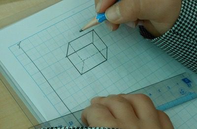 5時間目は算数です。今日は、直方体と立方体の「見取図の書き方」について学習します。