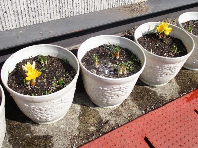 また、チューリップとクロッカスの植木鉢の様子を見て、進んで雑草抜きをしている姿も見られます。