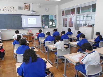 はじめに、書写ドリルの「うつしまる」の「10分間スピードチェック」に取り組みました。