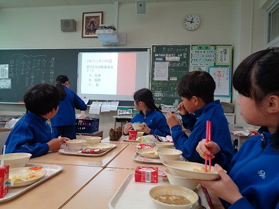 本来は「ありがとうの会」の中で実施する予定だった「6年生クイズ」ですが、今回は、給食中に校内放送で楽しく取り組みました。