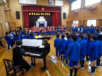 6年生と一緒に歌う最後のひとときです。卒業生の6年生も、在校生もみんな真剣に歌いました。