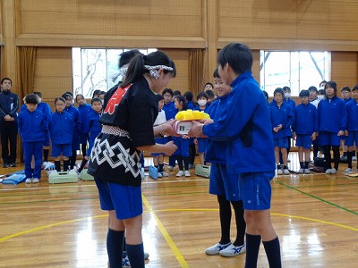 ・・・ところで、6年生が身に着けているものは、すべて在校生からのプレゼントです。