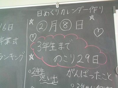 2年生として過ごす月日は、残り一ヶ月ほどとなりました。そこで、3年生までの残りの日数を日めくりカレンダーとしてまとめ、カウントダウンしようと計画しています。