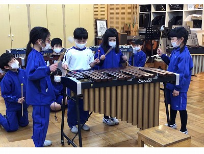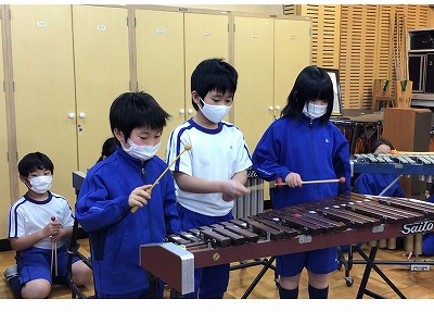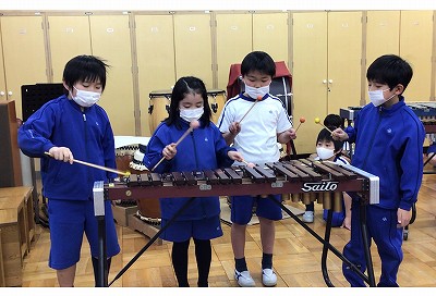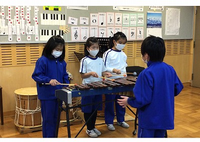 今日は「音楽時計」の発表の日です。2年生では初めてのグループによる“音楽づくり”に挑戦しています。