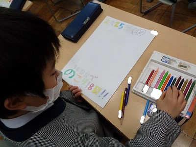 カラーペンやクーピーを使って、かわいくアレンジして楽しく進めました。
