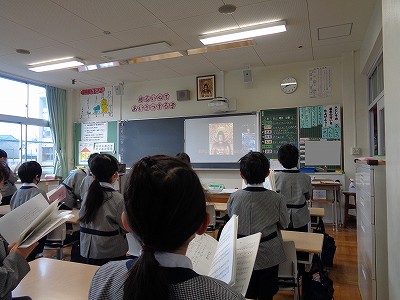 次に、二十四節気と昨日の節分のお話を聞きました。折しも今日は2月3日「立春」です。昔の暦では一年の始まりです。まだまだ寒いですが、春一番の南風がもうすぐ吹くことでしょう。
