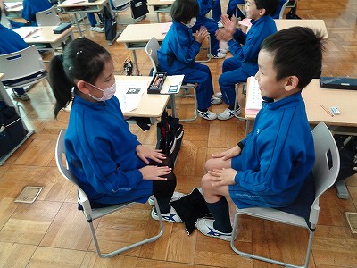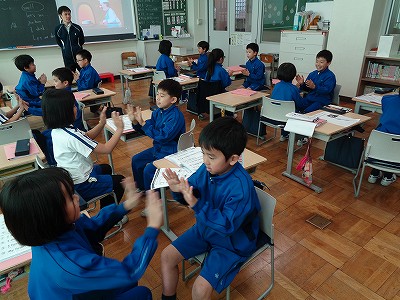 最近、金曜日の「英語朝体操」で取り組んでいる[Pat a cake] とアルプス一万尺英語バージョンです。男の子は比較的、歌と手遊びで遊ぶ機会が少ないように思いますが、2年生では、見事な腕前の男の子もいます!声を出して、体の動きと、さらに心(情動)が結びついて、学習を進めようと取り組んでいます。