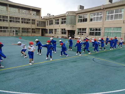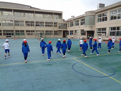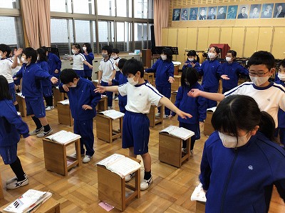 体育の時間に限らず、その他の授業や学校生活など、様々な場面で使う集団行動に取り組みました。