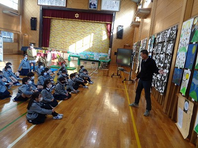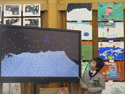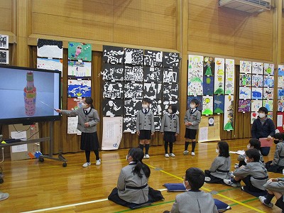 図工科の先生に他学年の作品紹介をしてもらったことで、より作品を身近に感じて、鑑賞することができました。