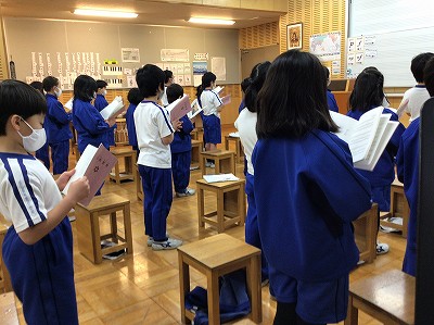 歌い終わった後、「足が痛いなあ」と知らせてくれました。毎週水曜日、このように聖歌を歌い、校長先生のお話を聞いていたことをしみじみと振り返りました。