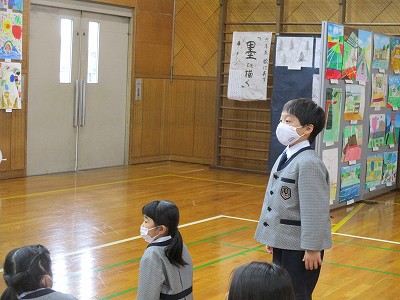 これまで図工の時間はもちろんのこと、休み時間やお家で『話す』練習に取り組んできた子どもたち。今日は、一人ひとりが緊張感持って、練習してきた成果を発揮することができました。