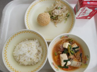 「トゥブチゲ、バンバンジー、ごま団子」でした。