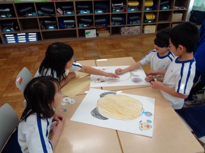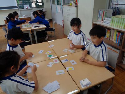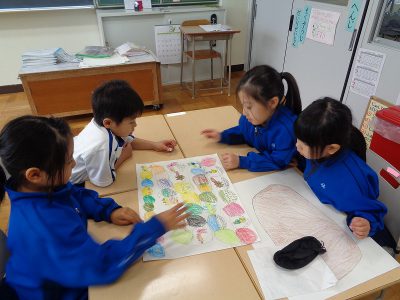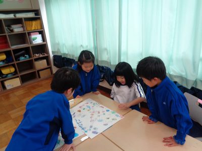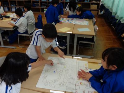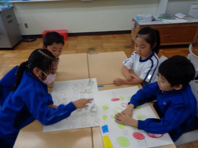 生活科の時間は、先週の続きで、チーム毎に遊びました。