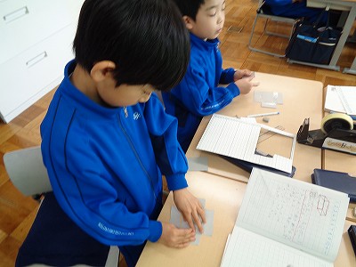 同じ長さの辺と辺を重ねることに気をつけて、活動しました。