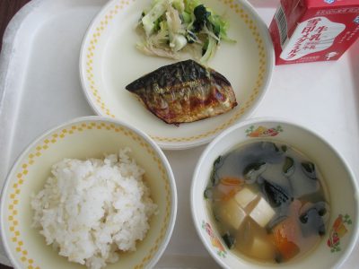 「世界の料理」最終日は「日本」です。和食の基本となるうま味たっぷりの出汁をとって、和え物や味噌汁に使いました。また、海に囲まれ「海産物が豊富な国」として、昔から食べられてきた魚を主菜にしました。さばは魚焼き機を使って、しっかり焦げ目がつくよう焼き上げています。