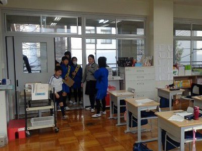 今週、毎朝あいさつ運動で各教室をまわっている児童会本部さんです。3年の教室にあいさつすると、今日も教室にいるみんなで、あいさつをしっかり返しました。