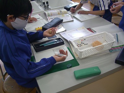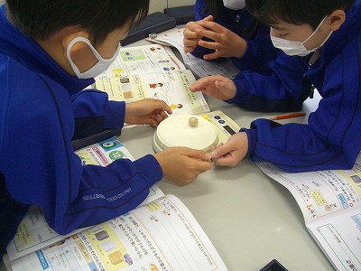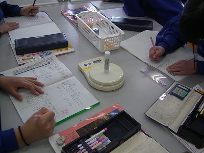 今日は、まず、いろいろな物の重さを「電子はかり」を使って調べました。