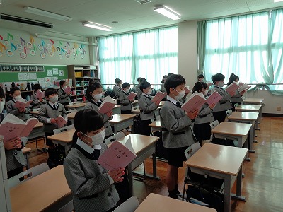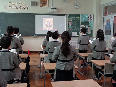 校長先生より、「この一年間、あなたががんばってきたこと、自分に身についたことを、知恩院でご報告して下さいね。」と話されました。この聖日参拝では、日頃の礼拝では歌わない仏教聖歌「四弘誓願」「法然上人頌」のお歌も流れます。今朝は歌詞の意味を感じながら、静かに聞きました。