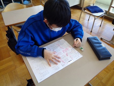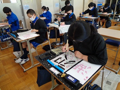3学期に入ってから、水曜日の2時間目は、毎週、習字に取り組んでいます。