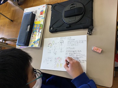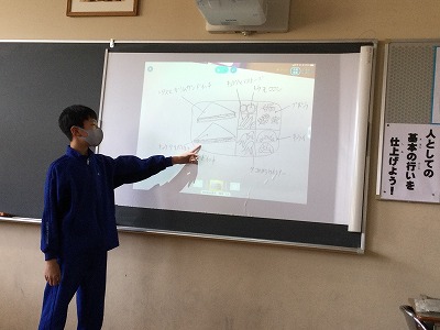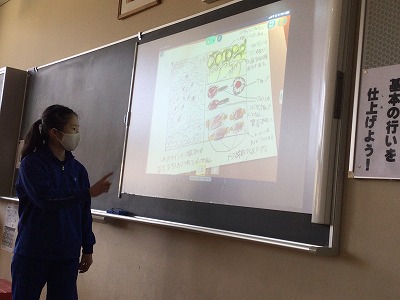 6年生最後の家庭科です。「マイ弁当」のメニューを考案し、発表する時間を過ごしました。