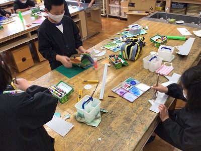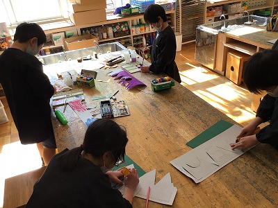 図画工作では「ありがとうの会」に向けて、6年生へ感謝の気持ちを込めてプレゼント作りをスタートしました。