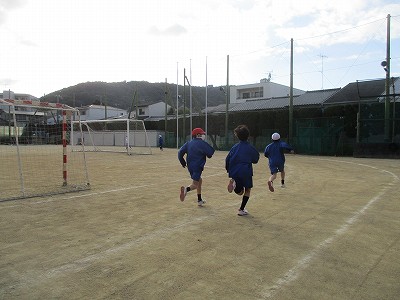 今朝は、小雪がちらつく寒い朝でしたが、元気よく走りました。走る前の準備体操がよくそろっていて、その時点でがんばる気持ちがONになっていたようです。