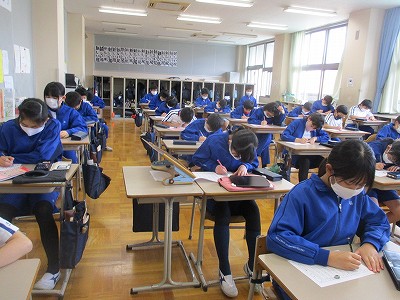 昼根っこタイムの漢字テストの様子です。正に「継続は力なり」みんな、よく頑張っています。