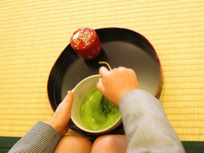 お客さんは、お友達が点てたお茶をおいしくいただきました。