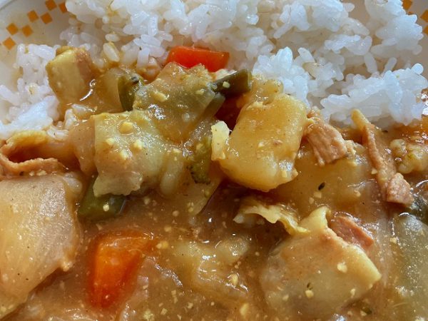 野菜の中で一番分量の多い玉ねぎはカレーに野菜の甘味を加え、カレーをまたひと味おいしくしてくれました。