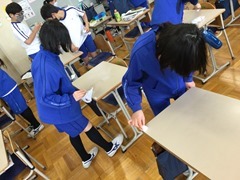 みるみるうちに、きれいで、すっきりしてくる“自分のスペース”を見て、「きれいになった~」「2年前のプリントよ、さようなら!」と、気分一新で6校時の学習に向かってくれました。