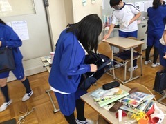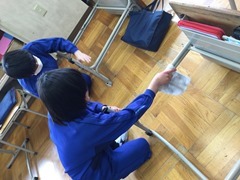 そのエリアの汚れを見つけ、美しく拭き掃除をするとともに、お道具袋の中身を見直し、汚れた物や使用済みの物を捨て、使いやすく整える作業も取り入れ、“身の回りを美しく!”を目指して活動しました。