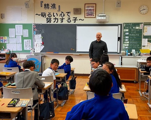 今日は、4年生最後の毛筆学習。「大地」を書きました。